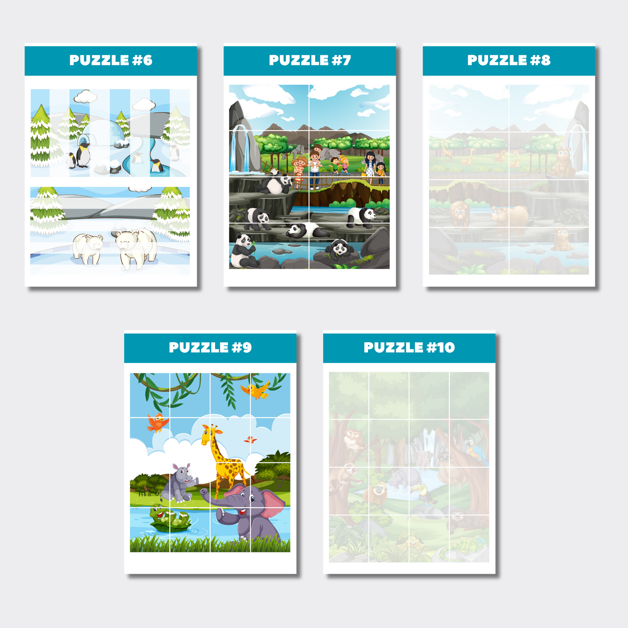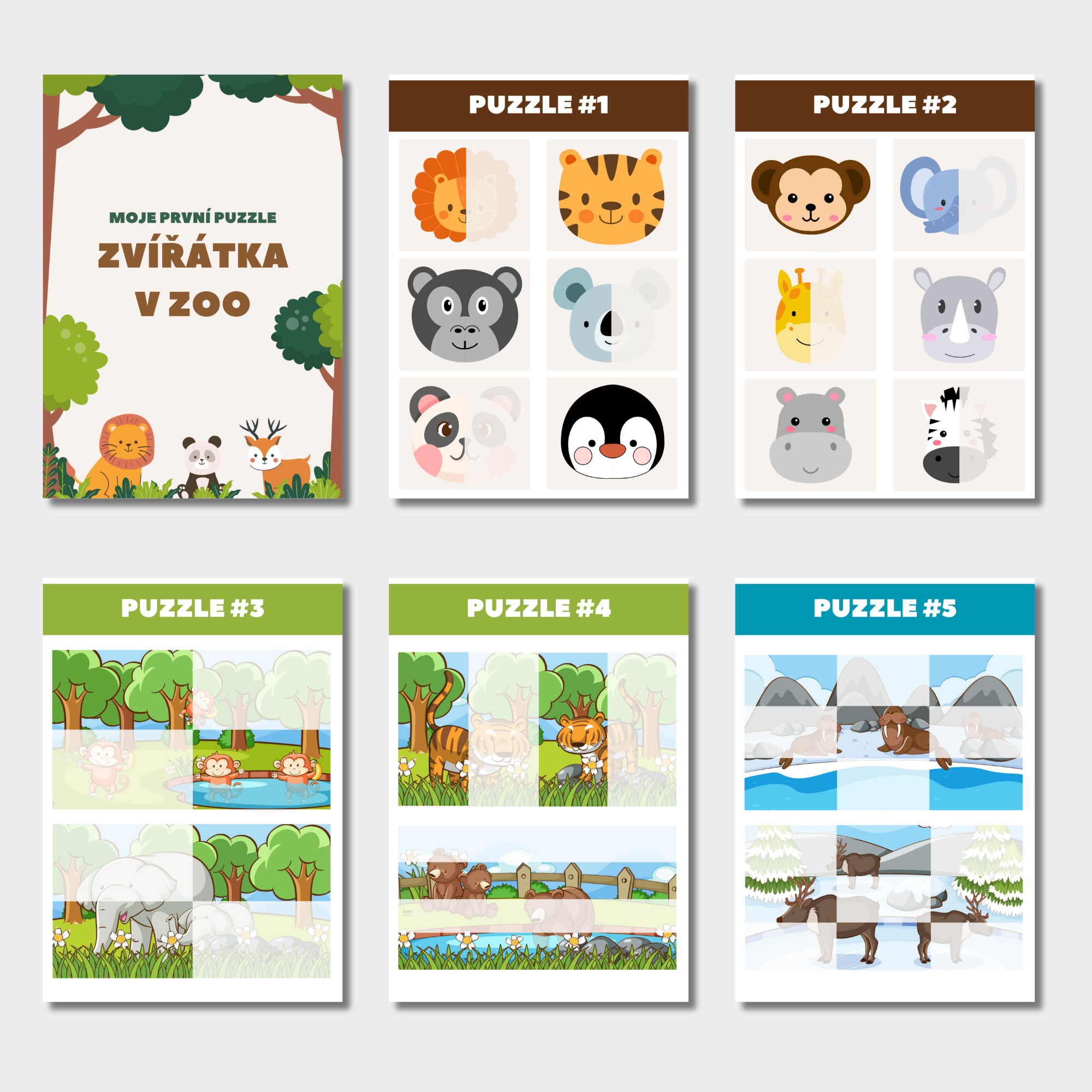 - 10 stran puzzle s motivy zvířátek ze ZOO